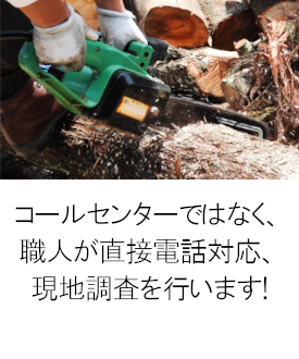 - 周囲に電線や建物などがあり、切り倒したい木を根本から伐採出来ない。